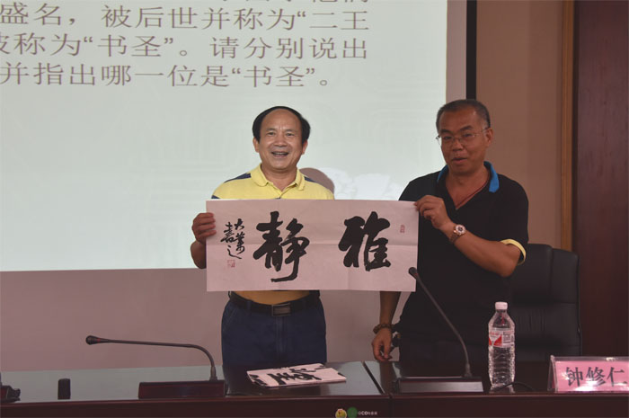 講座上,黃大(dà)業先生還饒有興致地發動廣大教師進(jìn)行知識競答(dá),並現場贈送其(qí)個人書法作品。教師們紛紛表示,黃大業先生的專業講解,不僅使大家對中國(guó)傳統書法藝術有了深刻的認識,還讓(ràng)大家切身感受到了書法的獨特魅力,進一步激發了自(zì)己對書法藝術的(de)濃厚興趣,受益匪(fěi)淺。