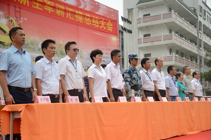 經過(guò)五天的緊張訓練,我院2017級2960名新生圓滿完成各項(xiàng)軍事訓練任(rèn)務,於9月8日在學院(yuàn)足(zú)球場舉行軍訓會操總(zǒng)結大會(huì)。學(xué)院院長鍾修(xiū)仁,廣西德育泉國防教育基地(dì)主任汪德華,學院副院長陸天雲、關菲明,院長助理鄭超文、樊海林以(yǐ)及(jí)其他相關部門負責人等領導出席了大會。