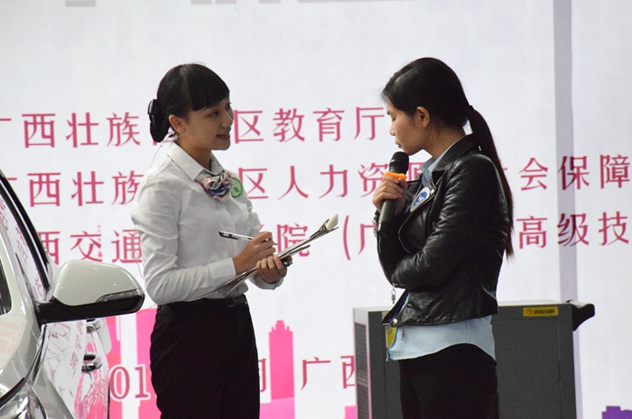 據悉,此次比賽共有來自全區32所學校的34支隊(duì)伍參(cān)加比賽。比(bǐ)賽共設置三個子賽(sài)項(xiàng),分別是“汽(qì)車營銷基本能力測試”、“服務接待綜合能力模擬”、“配件管理綜(zōng)合能(néng)力(lì)模擬”。比賽過程中,我院參賽(sài)選手(shǒu)董麗芳、楊心麗精心準備、沉著應戰,展現了規範(fàn)的操作流程、良好的服(fú)務技(jì)能和現場隨(suí)機應變的能(néng)力,贏得了評委和觀眾的一致好評,為學院爭得(dé)了(le)榮譽。