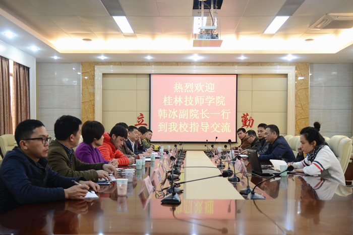 316日下午,桂林(lín)技師學院韓冰副院(yuàn)長一行12人(rén)到我院(yuàn)參觀交流,雙方在我院辦公樓(lóu)會議室舉行(háng)了座談會。我(wǒ)院樊海林院長助理以及學生工(gōng)作處(chù)主要負責(zé)人參加了會議。