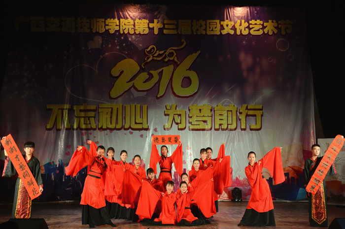 1229日晚(wǎn),我院在禮堂舉行2017年元旦綜合(hé)文藝晚(wǎn)會暨“不忘初心 為夢前行”第十三屆校園化藝術節閉幕式。自治(zhì)區交通運輸廳、自治區人力(lì)資源和社會保(bǎo)障廳(tīng)、自治區(qū)道路運輸管理局、我院領導班子(zǐ)以及全院師生齊聚一堂,共同迎接新年的到來。我院院長鍾修仁、自治區道路運輸管理局黨委副書記蒙青山、自治區人力資源和社會保障廳職業能力建設處處長楊春華先後致辭。