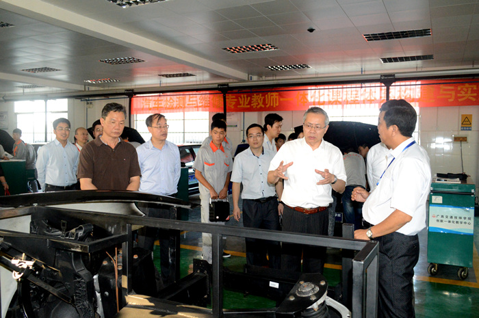 在我院院長鍾(zhōng)修(xiū)仁、黨委書記(jì)羅華(huá)等學院領導的陪同下,湯濤副部長一行先後實地參觀、考(kǎo)察了我院大師(shī)工作(zuò)室、汽車(chē)性能與排放測試實驗中心、汽車4S實景教學基地、玉柴發動機實訓中心、中(zhōng)德諾浩(hào)班日常教學基(jī)地、汽車一體化實訓中心(xīn)、汽車檢測與維修(北京(jīng)現代)實訓中心等教學實(shí)訓場所(suǒ)。