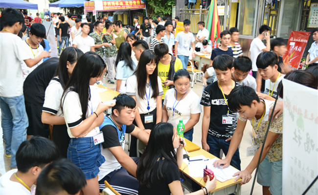 學生在填寫報名表
