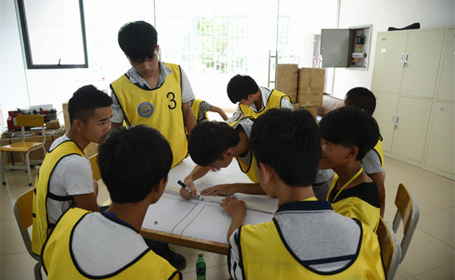 體驗課(kè)活動從9月19日上(shàng)午開始,42名學生隨機分為4個小隊,以小(xiǎo)團(tuán)隊配(pèi)合的形式進行體(tǐ)驗課活動。期間,他們參加了“桃花朵朵開”、“安全標識學習”、“三圈理論”、“頭腦風暴”、“我是鎮長”、“小鎮災後重(chóng)建”、“安全事故案例分析”、“KYT”、“電腦拆裝訓練”、“信息接龍”、“超級過山車”等多個生動有趣的(de)素質拓(tuò)展項目。在緊張激烈的體驗訓練中,所有同學都以(yǐ)飽(bǎo)滿的精神(shén)狀態投入到各項活動中,積極麵對(duì)挑戰,在趣(qù)味橫生、生動活潑的遊戲氛圍中,學習溝通協調、團隊合作,用行動詮釋了不畏困難、敢於拚搏(bó)的(de)精神意誌(zhì)。
