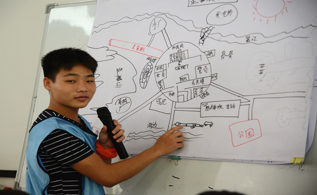 各小組在紙(zhǐ)上繪製心目中(zhōng)的“小鎮”