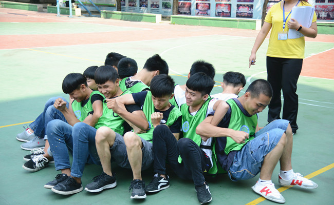 在“坐地起身”項目中,要(yào)求整個小團隊成員之間雙臂相互交叉圍成一圈,背對背坐在地上,合力使所(suǒ)有人站起來。剛開始大(dà)家都采(cǎi)用兩人合作的方式練習,此(cǐ)時大家都很輕鬆地完成了任務,等到(dào)四個人、六個人一起合力起身的時候,困難就(jiù)逐漸加大了,最後到整(zhěng)個團隊合力站起(qǐ)的時候更是屢次(cì)遭受失敗,常(cháng)常出現這邊(biān)同學站起來了,那邊還坐著的“一邊倒”現象。雖然困難(nán)加(jiā)大,但是大家都沒(méi)有輕易放棄,而是詢問教練得到更好的解決辦法,團隊小隊長在期間讓大家統一口號,手挽手一起用力不拖遝,經過多次練習,終於每個團隊都(dōu)順利找到方式方法,成功合力起(qǐ)身。嚐到(dào)了成功的滋味,這些同(tóng)學都開心地大笑了起來,大家的團隊友情在此刻得到了進一步升華。