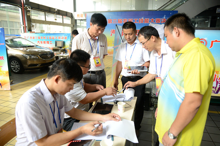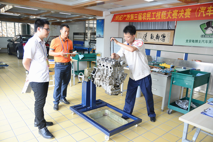 據悉(xī),廣西農民(mín)工技能大賽已經成功舉辦了三屆,其中汽車修理(lǐ)工賽項是首次進入比賽,即有滿額選手參加總決賽。此次大賽的參賽選手都發揮了較高的水平(píng),展示了汽車修理工的良好精神風貌、過高(gāo)的業務素質和專業的技(jì)術(shù)水平。