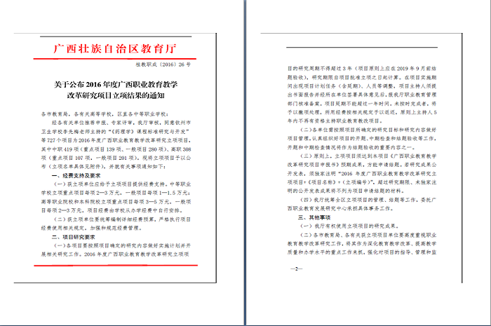 會上,關(guān)菲明副院長(zhǎng)通報了我校2016年申報教育廳教改(gǎi)項(xiàng)目的審批情況。我校今年申報的3個項目,經過專(zhuān)家嚴格(gé)評審,教育(yù)廳審(shěn)核,在全區(qū)727個(gè)項目中脫穎而出,全部通過立項(xiàng)審批,其中2個(gè)通過重點項目審批,1個通過一(yī)般項目審批(pī)。