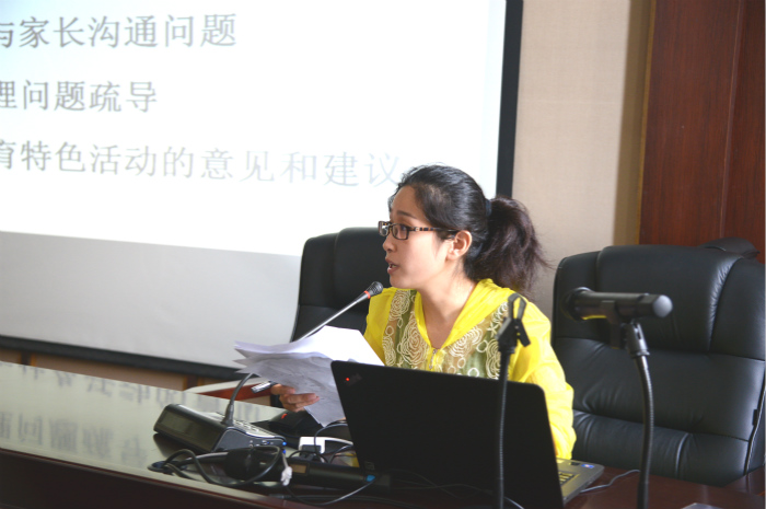 第二階段為各組(zǔ)代表(biǎo)進行發言,他們就“班主任與家長如何進行良好溝通(tōng)”,“如何做一名陽光教師”,“學生情感問題如何疏導與解決”等(děng)議題闡述了小組討論意見。在分享經驗的同時,各位班(bān)主任也真誠(chéng)地提出工作中存在的困惑,並一同與大家(jiā)商討改進的良策。