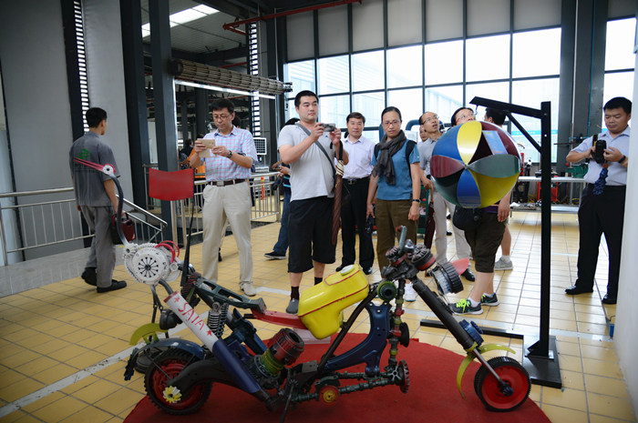 到訪人員參觀我院(yuàn)學生製作的鈑金噴塗作品(pǐn)