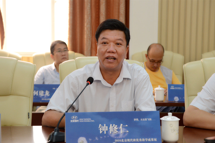 參(cān)觀結束後,“北京現代班”優秀合作院校教學成(chéng)果展在學院六樓會議室舉行,我院與各個兄弟學校、項目學校的到訪(fǎng)人員進行了深入交流和探討。成果展由(yóu)北京現(xiàn)代班項目組組長劉朋主持,他向與會人員簡要介紹了我院“北京現代班”項目所獲得的成績,並高度肯定了我院在該校企(qǐ)合作項目上所取得的優秀教學(xué)成(chéng)果。隨後,我院院長鍾修仁在致辭中簡要(yào)介紹了我院的發展情況,並代表學(xué)院對與會人員的(de)到來表示熱(rè)烈歡迎,他表示真誠希望能與各個兄弟(dì)學校、項目學校深入交流,收獲寶貴的發展經驗(yàn)。會上,汽車工程係主任(rèn)樊海林(lín)、信息與商務(wù)係主任封桂炎分別詳細介紹了我院“北京現(xiàn)代班”和“北京現代服務營銷班”發展情況。