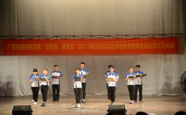 我院(yuàn)舉行“知黨恩、跟黨走(zǒu)”2017屆頂崗實習生歡送晚會暨學生會(huì)社團(tuán)之(zhī)夜(yè)晚會