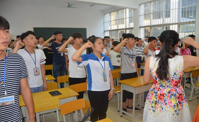 莊(zhuāng)嚴的團(tuán)歌聲後(hòu),在團委楊霜老師的帶領下,102名新團(tuán)員麵對鮮豔的團(tuán)旗(qí),舉起右手莊嚴宣誓(shì):“我誌願加入中(zhōng)國共產主義青年團,堅決擁護中國共產黨(dǎng)的領導,遵守團的章程……為共產主義而奮鬥。”