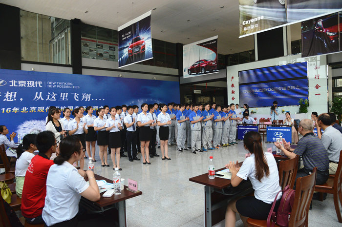 2015級北(běi)京現代汽車營銷專業的學生展示職業(yè)禮儀(yí)