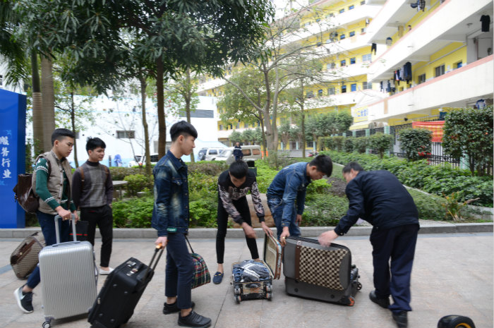 學生進入宿舍(shě)前,宿舍管理員(yuán)例行安(ān)全檢查,禁止學生攜帶違禁用品,排除安全隱患。