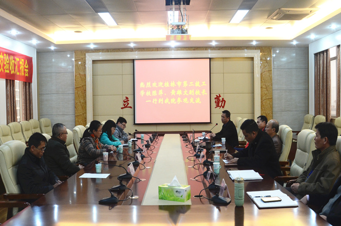 12月29日,桂林市第二技工(gōng)學校陳萍副校長一行(háng)5人到我院參(cān)觀交流。學院(yuàn)黨委書(shū)記羅華、副院長陸天雲以及相關部門負責人熱情接待了來訪的一行人。