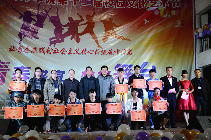 1229日晚,我院高峰(fēng)校區在校區體育館舉辦第十二屆校(xiào)園文(wén)化(huà)藝術節學生曲藝小品綜合比賽決賽暨元旦(dàn)晚會院長(zhǎng)鍾修(xiū)仁、副院(yuàn)長關菲明 黨委副書記張(zhāng)健生,院長助理譚勁濤以及相關中層領導等出席,並為獲獎班級頒獎。