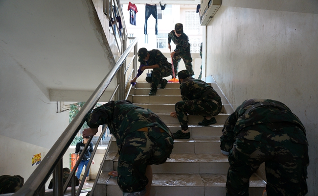 護校(xiào)隊的(de)同(tóng)學清洗宿(xiǔ)舍(shě)樓梯
