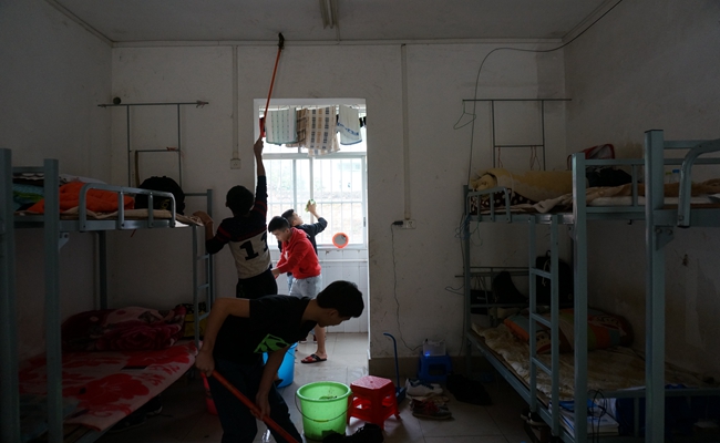 各(gè)宿舍的同學認真清潔自己的宿(xiǔ)舍