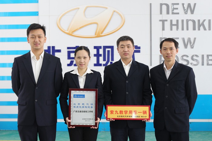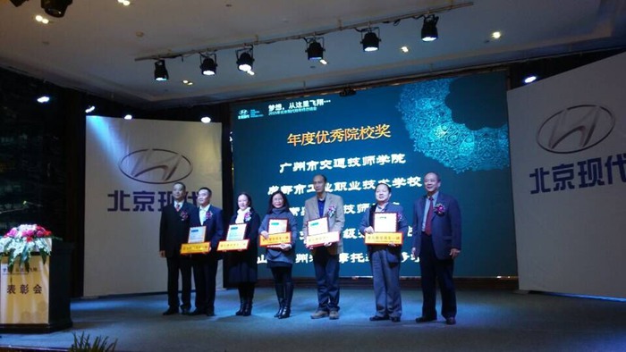 我院榮獲2015“北京現代班”年度優秀院(yuàn)校獎(jiǎng),北京現代汽車有限公司獎勵我院全新(xīn)北京現代索納塔9轎車一輛。項目核心教師肖華煒老師榮獲2015年(nián)北京現代第六屆維(wéi)修技師技(jì)能競賽“教師(shī)優勝獎”。