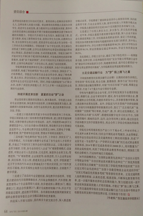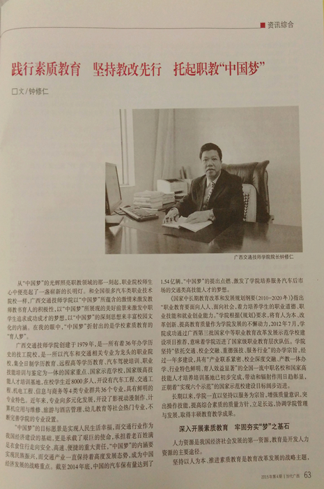 《當代廣西》:踐行素質教育  堅持教改先行 托(tuō)起職教“中國(guó)夢”