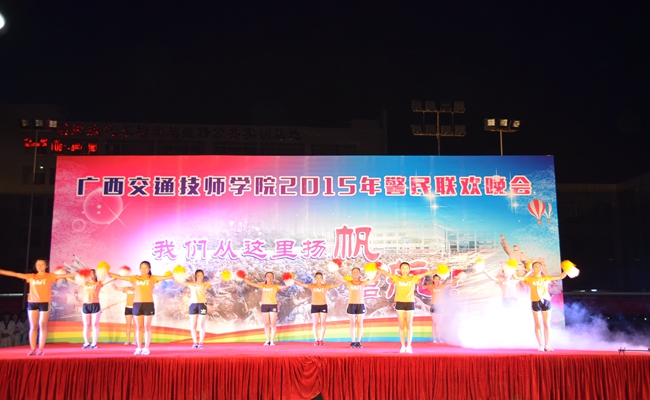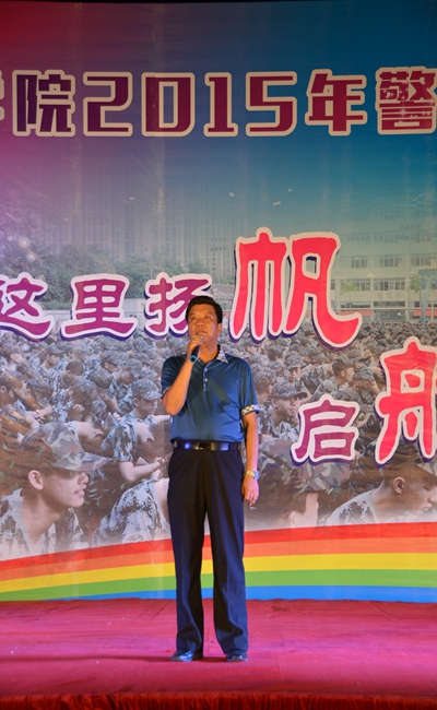9月10日晚,我院2015年警民聯歡晚(wǎn)會在學院足球場舉辦。學院鍾修仁院(yuàn)長(zhǎng)出(chū)席晚(wǎn)會(huì)並致詞(cí),廣西武警總隊直屬支隊隊長覃振周、學生工作處領導、各班班主(zhǔ)任及教官、2015級新生們觀看晚會。