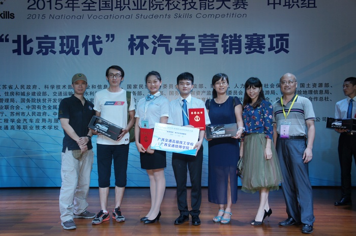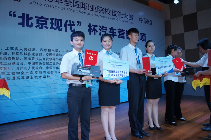 2015年全國職業院校技能大賽(中職組)“北京現代”杯汽車(chē)營銷賽項(xiàng)於6月12-14日(rì)在(zài)江蘇省蘇州市舉行,我校選手(shǒu)楊思琦、胡景怡經過激烈拚搏,榮獲全國二等獎,為學院爭(zhēng)得榮譽,為廣西(xī)爭了光。