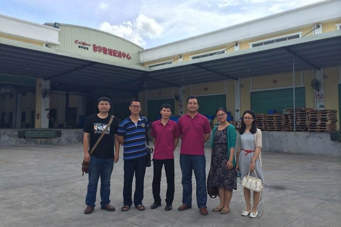 我院4位教(jiāo)師與彩華物(wù)流配(pèi)送中心的倉庫主管合影(yǐng)