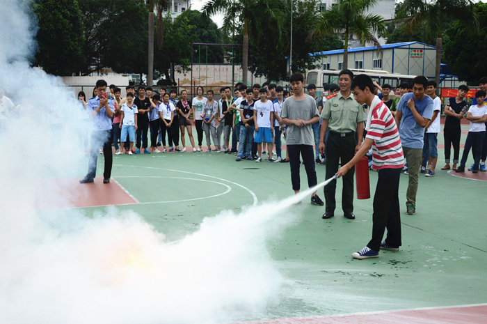 在首先進行的消(xiāo)防疏散演習中,當公寓樓門前濃(nóng)煙升起,校園警報拉響,學(xué)生們(men)迅速反應,用濕毛巾捂住口鼻,在老師的指引(yǐn)下按預定路線(xiàn)有秩序地迅速撤離,到達指定的安全地點。演習結束(shù)後,南寧興寧區消防中隊官(guān)兵現場演(yǎn)示消防滅火器(qì)具的使用方法,並指導學生進行滅火演(yǎn)練。