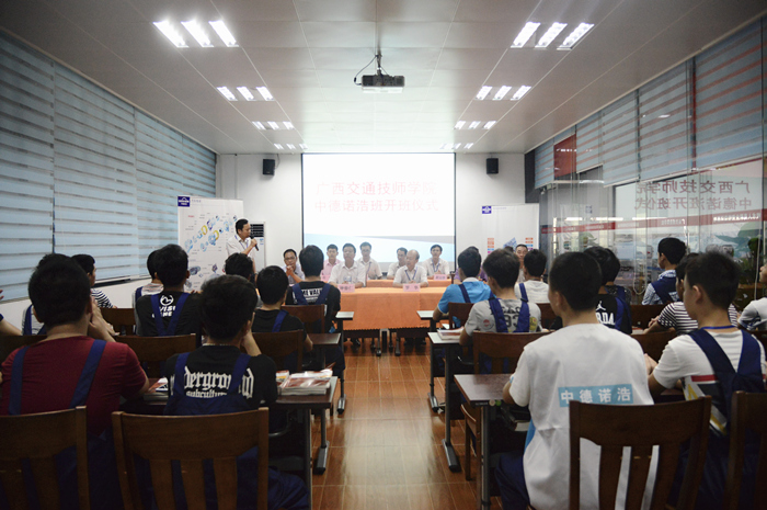 5月(yuè)28日(rì)上午,我院在德能樓二樓舉行“中德諾浩”班開班儀(yí)式。學院鍾修仁院長,羅華(huá)書記,汽車係、招生就業處、學生工作處相關負責人出席(xí),中德諾浩教師團隊、班主任和全體學員參加了儀式。