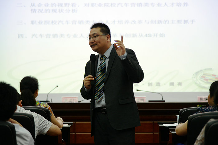 上海(hǎi)工業品營銷研究院高級講師、項目型(xíng)銷售與管理資深顧問、中(zhōng)國人民(mín)大學MBA特聘講師孔文(wén)旭,進行了《校園汽車營銷人才培養的改革與創新》講(jiǎng)座,他從汽車產業對汽車營(yíng)銷專業人才的迫切需求切入,從企業的視野分析職業(yè)院校汽車營銷類專業人才(cái)的培(péi)養、改革和創新的主要抓手,並闡述了“培養與創新從4S開始(shǐ)”的(de)觀點。