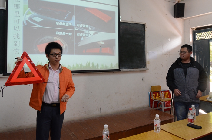 黃磊老師指導學生安裝汽車安全三角(jiǎo)架