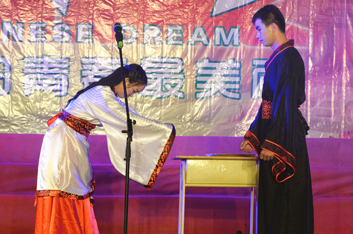 開(kāi)幕式上,共有12支隊伍參(cān)與學生《弟子規》誦(sòng)讀競賽決(jué)賽的(de)角逐。整齊洪亮的朗讀聲,富有創意的情景表演(yǎn)和優美動人的舞蹈贏得(dé)觀眾們的熱烈掌聲。