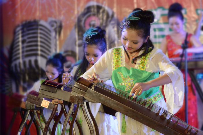 良慶中學師生表(biǎo)演古箏合奏(zòu)《荷塘月色》