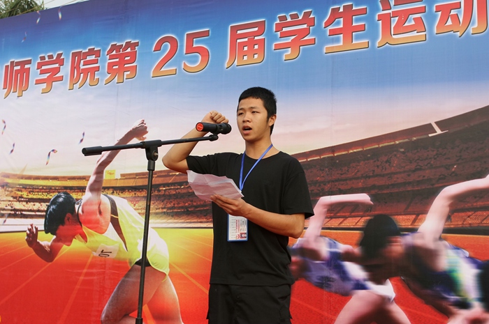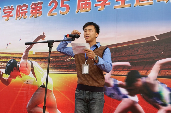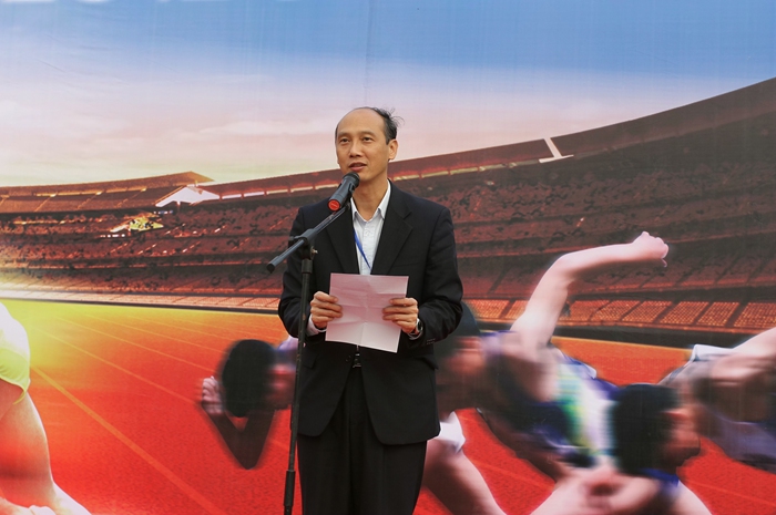 運(yùn)動員入(rù)場完畢後,學院關菲明副院長發表了熱情洋溢的講(jiǎng)話(huà)。他首先代表學院向精(jīng)心籌備本屆運動會(huì)的全體師生們表示衷心的感謝,向全(quán)體全體運動員、裁判員致以親切的問候。他(tā)指出,校運(yùn)會是對我(wǒ)校體(tǐ)育工作的一次大檢閱,更是對(duì)我院師生精神麵貌和綜合素質的大檢閱(yuè)。希望全體運動員遵守比賽規程,服從大賽的安排,尊重裁判,尊重對手,在賽場上做到成績與風格同在,友誼與歡樂並存,讓青春的活力迸發在賽場的每個角落,充分(fèn)展示(shì)當代(dài)技師學院學生(shēng)蓬勃向上的時代風采和精神風貌。