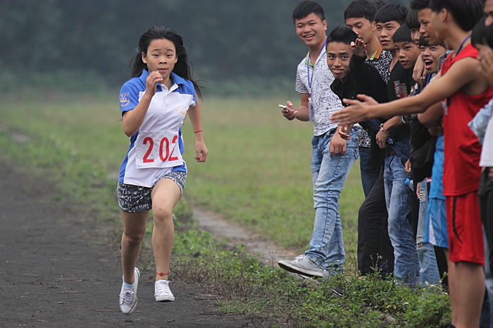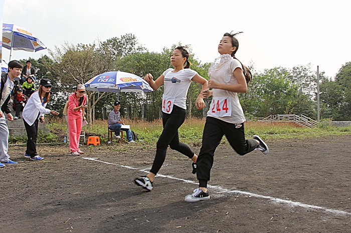 女子1500米比賽現場,14市場營銷班黃嘉豔同學衝刺瞬間