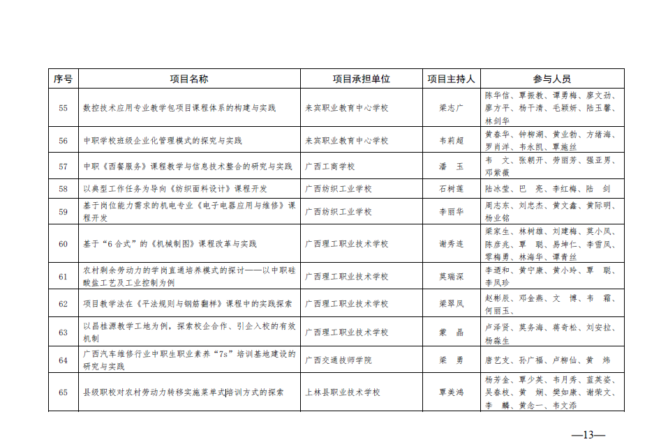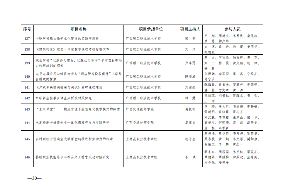 近日,廣西壯族自治區教育廳發布了《關於公布2014年度廣西中等職(zhí)業教育教學改革立項項目的通知》(桂教(jiāo)職稱〔2014〕32號)文件,公布了2014年度廣西中等職業教育教學改革立項項目名單,我校三項科研課題成功申報成為自治區教育廳教改立項項目。