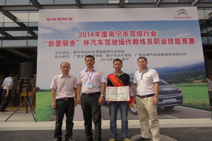 南(nán)寧市運升駕校校長潘(pān)敏春(右一)與獲獎者合(hé)影