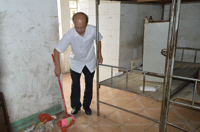 我院黨員教(jiāo)師清掃學生學(xué)生宿舍