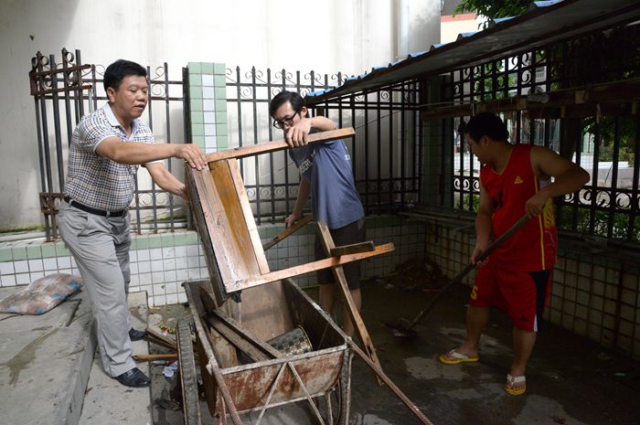 學院鍾修仁副院長與黨員教(jiāo)師們清理9棟學生宿舍活動區域