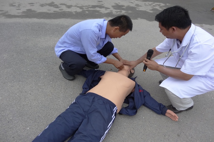 本(běn)次活動請(qǐng)來了專業的救護人員進行示範講解醫療救護知(zhī)識(shí),模擬汽車行駛過程中發生事故,乘客受(shòu)傷時如何包紮;現場演示(shì)傷員骨折、皮外(wài)傷包紮、昏迷等簡易現場施救(jiù)處置方法(fǎ);對無法言語,存在意識喪失,心跳驟停的傷員進行模擬搶救;對活動(dòng)性失(shī)血傷員(yuán)的救治及(jí)對開放性骨折傷員(yuán)的處理等急救方法和相關(guān)救護知識。