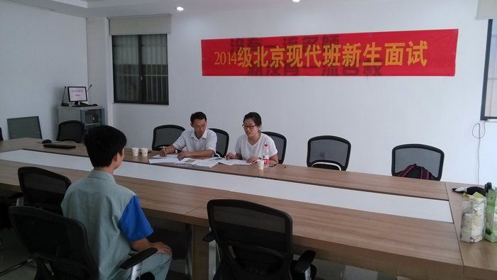 6月6日上(shàng)午,2014級北京現代班新生麵試在大(dà)師工作(zuò)室展開,北京現代李翔女士主持進(jìn)行選拔。