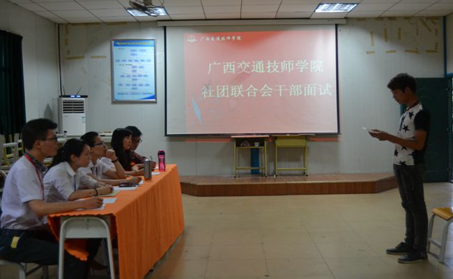 我院社團聯合會幹部(bù)招聘工作(zuò)於6月4日(rì)晚圓滿(mǎn)完成。5月26日至6月4日,根據交技【2014】2號《關於成立廣西交(jiāo)通技師學院社團聯合會(huì)的決定》文件要(yào)求,我院團委麵向全院在(zài)校生招聘社(shè)團(tuán)聯合會幹部。