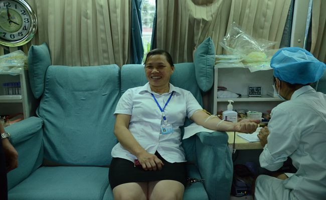獻(xiàn)血(xuè)後的(de)老師和同學們在交流獻血的好(hǎo)處