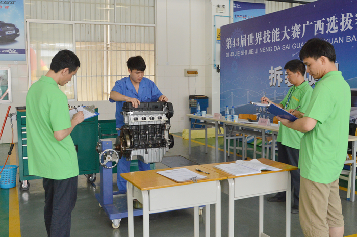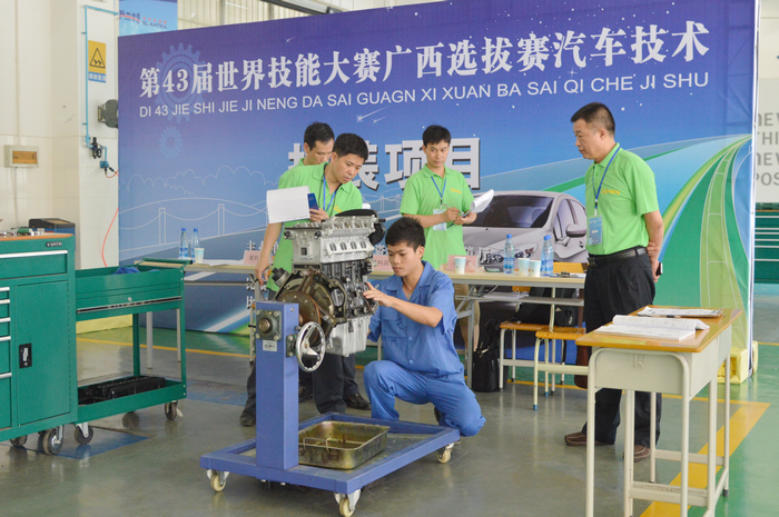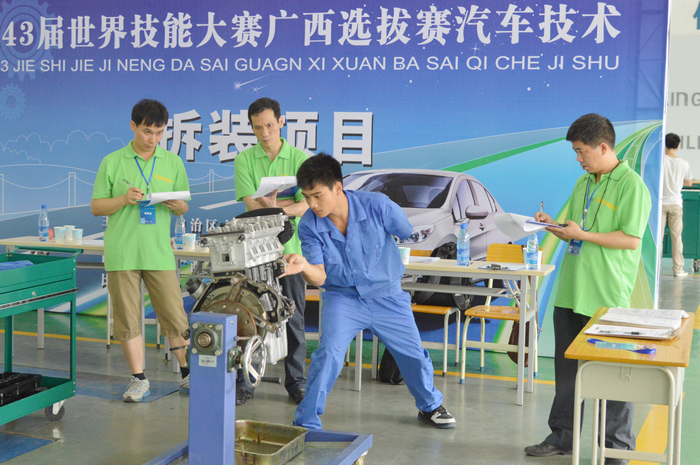 第(dì)43屆世界技能大賽汽車技術項目廣西選拔(bá)賽於5月30日(rì)在我院舉行(háng)。廣西機械高級技工學校、廣西石化高級(jí)技工(gōng)學校以及我院三所學校的12名選手參賽,我院蒙堅傑、黃偉業、陳南有等三位學生分獲第一、第二和第四名(míng)。自(zì)治區人力資源和社會保障廳職業能力建設處處長張遠、自治(zhì)區職業鑒定中心副主任林毅、自治區技工教(jiāo)育研究室高級講師陳振成以(yǐ)及自治區職業鑒定中心科長周雪林等領導蒞臨賽場觀摩指導。