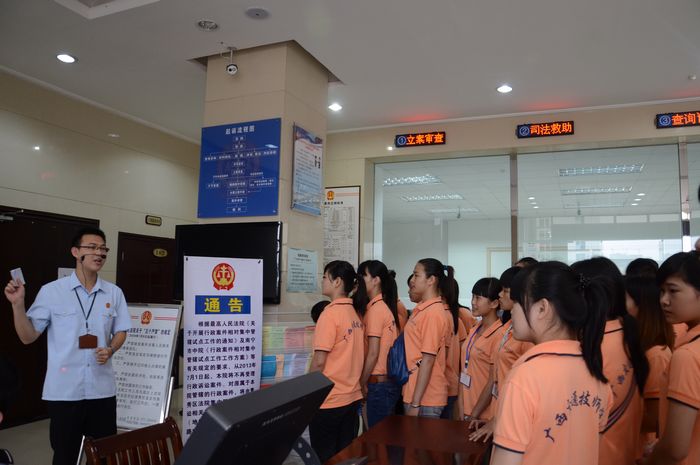 法院工作人員首先引導(dǎo)學員參(cān)觀了訴訟服務(wù)大廳等法製教育場所,並對法院曆史發展沿革、廉政文化建設、法製(zhì)建設等進行了講解,為接(jiē)下來的庭(tíng)審做好了知識準備。