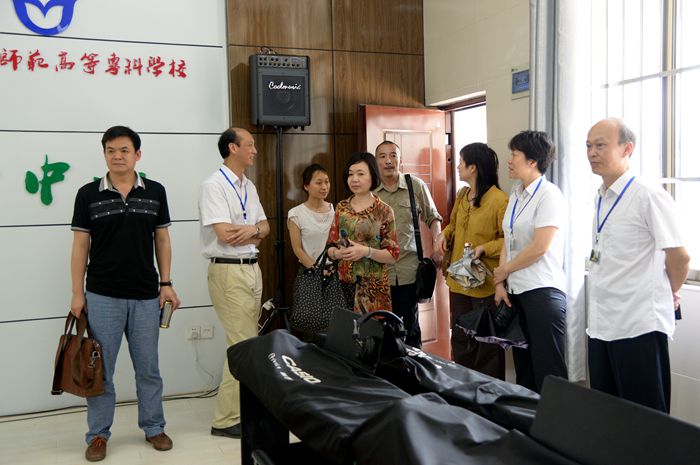 廣西商業(yè)高級(jí)技工學校(xiào)副書記袁(yuán)婭一(yī)行詳細了解我(wǒ)院先進的實訓(xùn)設備