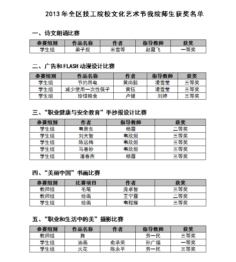 我院師生在2013年全區技工院校文化藝術節中再創佳績(jì)