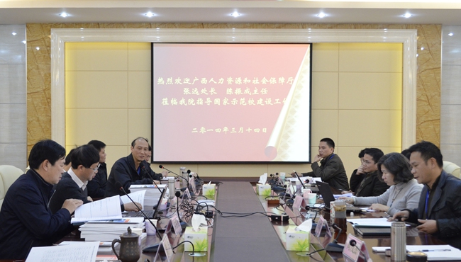 廣西人力資源(yuán)和社會(huì)保障(zhàng)廳張遠處長、陳振成主任蒞臨我校指導國改示範校建設(shè)中期檢查工作