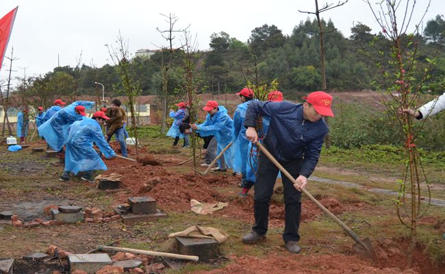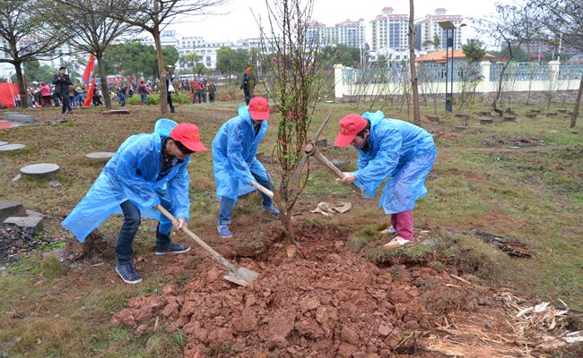 植樹活動在五合(hé)大道(dào)的邕江邊舉行,簡短的動(dòng)員儀式後,同學們便迫不及待的拿起工具(jù)進行植樹活動。在植樹活動中,老師和同學們分成(chéng)三人一組,各組分工協作,有的(de)扛樹苗,有(yǒu)的堆土,有的提水。經過大家的努力配合,我們在邕江邊種下了一棵棵的桃樹。